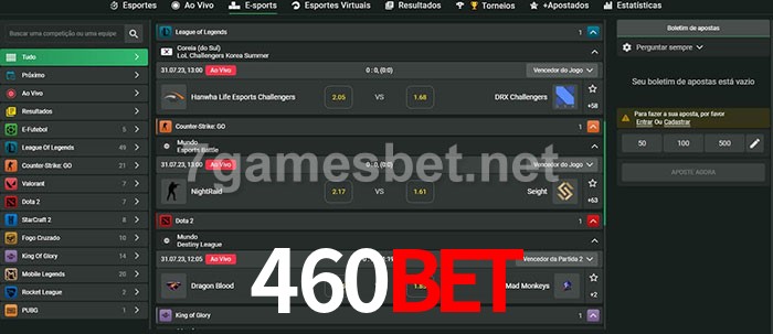 O 460Bet oferece uma grande seleção de opções de apostas em e-sports com probabilidades competitivas